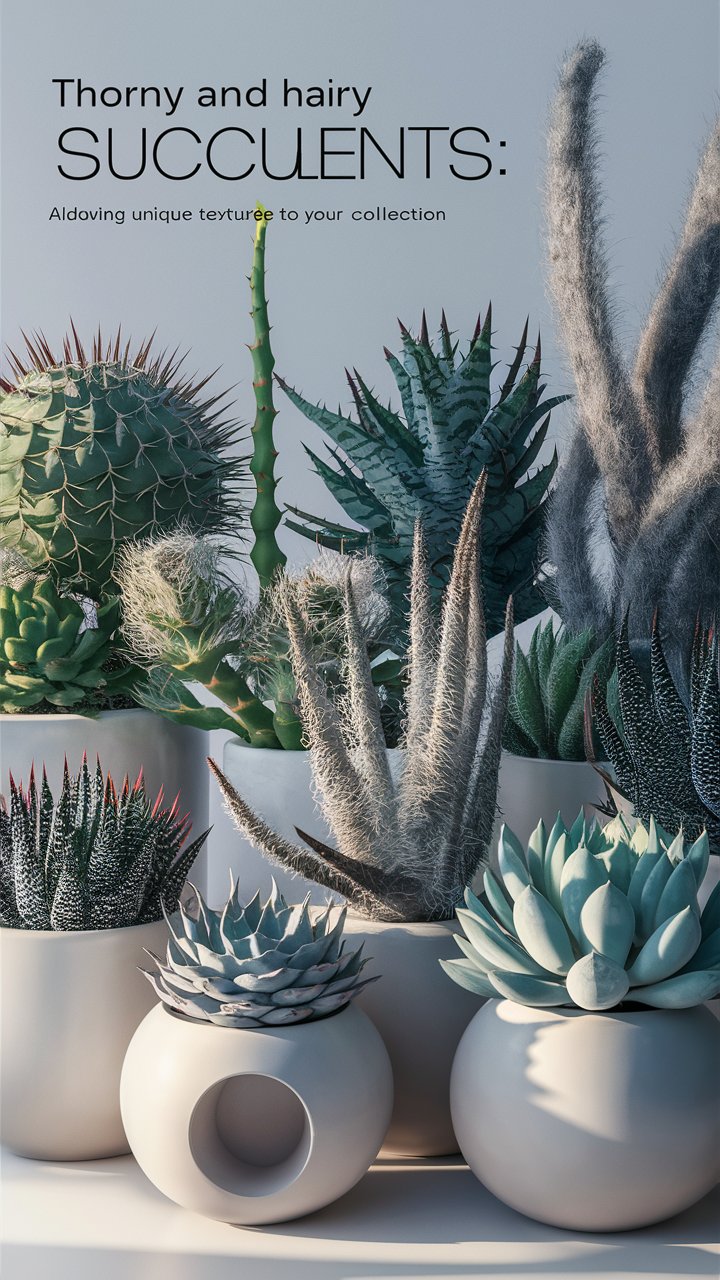 Thorny and hairy succulents represent specialized adaptations in the succulent family. These features serve multiple purposes: